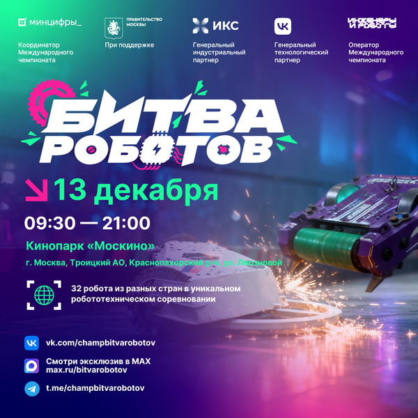 В этот день в поединках сойдутся 32 сильнейшие команды: 16 команд в весовой категории до 110 кг и 16 — в поединках мини-роботов весом до 1,5 кг.