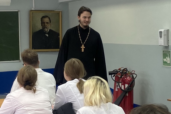 На факультете ветеринарной медицины и биотехнологии РГАТУ прошла встреча студентов 3 курса специальности «Ветеринария» с клириком храма Покрова Пресвятой Богородицы иереем Алексеем Зенкиным.
